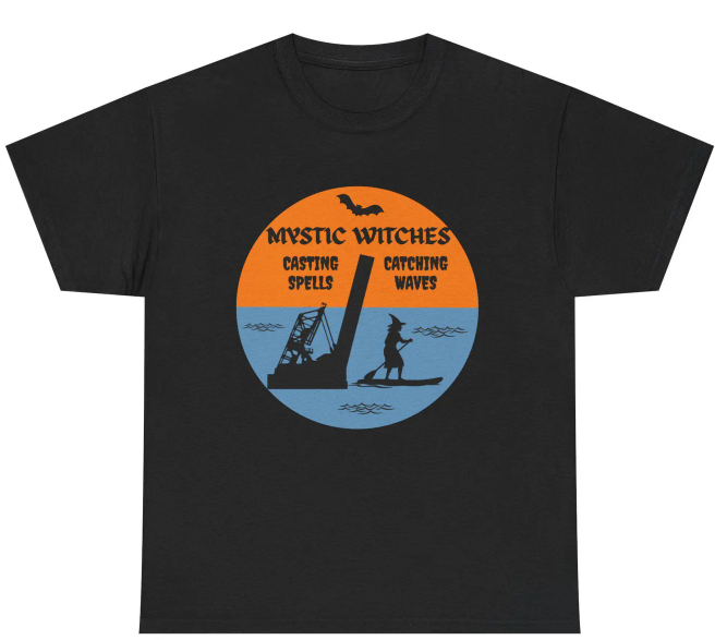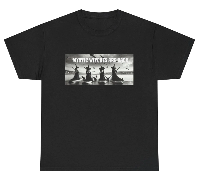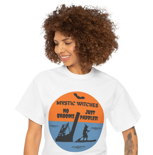 Mystic Witches on Paddleboards Apparel and Accessories Mystic River Happy Witches Casting Spells Catching Waves No Brooms Just Paddles Riding Tides Not the Wind Out-of-State Witch Events Cape Cod Ornament Mystic Boats Coffee Mug Mystic Boats Ornament Mystic Witches Ornament Mystic Witches Pillow Mousepad Wall Art Car Coaster